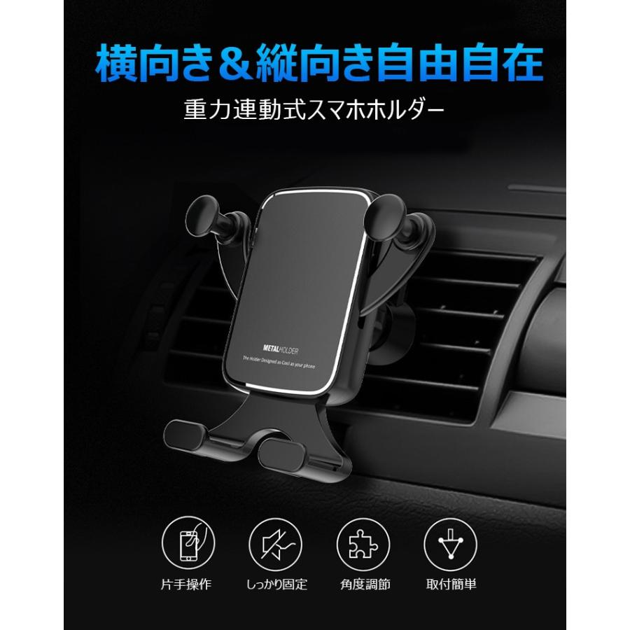 Amazon 車載ホルダー スマホホルダー 車 携帯ホルダー スマホ ホルダー 車載 スマートフォン 携帯スタンド カー エアコン吹き出し口用 重力で自動調節 横縦両用 落下防止 Iphone Android多機種対応 携帯電話ホルダー 車 バイク